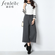 森菲特9分毛呢阔腿裤女2017秋冬季新款韩版宽松休闲裤宽松显瘦