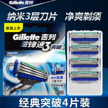 吉列锋速3突破刀片4片装剃须刀手动刮胡刀刀头男士三层剃须刀片