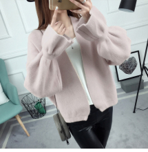 2016春秋新款针织开衫女短款外套韩版纯色百搭披肩喇叭袖毛衣上衣