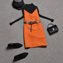欧洲站2016冬装欧货潮新款时尚针织打底衫毛呢吊带连衣裙两件套女