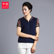 芊茵休闲加肥妈妈装夏装短袖上衣短款宽松中年女装开衫中老年卫衣