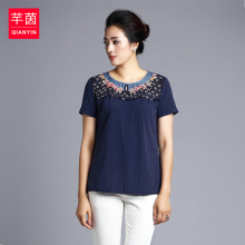 芊茵优雅妈妈装夏季薄款短袖宽松中老年短款体恤中年女士婚宴上衣