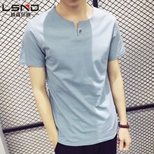 林森尼迪男士t恤短袖男v领纯棉韩版夏季白色上衣服半袖体恤修身潮
