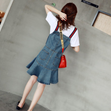 费图2017夏季新品时尚牛仔吊带连衣裙 中长款休闲荷叶边套装裙