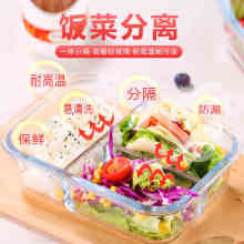 iCook带3分隔玻璃饭盒微波炉专用带隔层保鲜盒分格水果便当密封碗