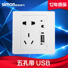 simon西蒙电气西蒙开关插座55E系列五孔二三插带USB插座手机充电