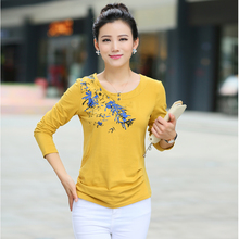 2016春秋新款中年妈妈装印花宽松长袖t恤女打底韩版女士打底小衫