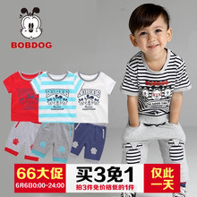 巴布豆童装旗舰店男童宝宝短袖运动套装夏男潮1-3岁纯棉正品韩版