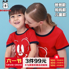巴布豆旗舰店亲子装儿童短袖t恤男童父子装全家装母子装出门夏季