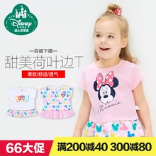 品牌童装旗舰店迪士尼宝宝夏装女童短袖t恤荷叶边可爱儿童上衣