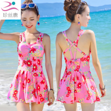2016新款 连体裙式保守遮肚平角泳衣女 钢托小胸聚拢泡温泉游泳衣