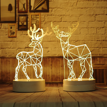 3D小夜灯LED立体台灯插电卧室床头灯麋鹿小猫咪创意梦幻灯饰刻字
