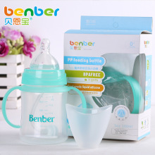 贝恩宝新生儿防胀气防摔宽口径pp塑料奶瓶婴儿硅胶奶嘴带吸管手柄