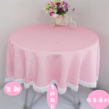 粉格子桌布布艺圆形桌布 田园小清新格子餐桌布茶几长方形台布