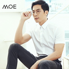 MOE墨诺佰夏装男士短袖白衬衫职业正装修身男装纯色商务白衬衣