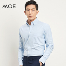 MOE墨诺佰 男士衬衫长袖纯色韩版修身纯棉免烫时尚商务休闲衬衣