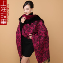 上海故事正品女冬款奢华狐狸毛皮草毛领加厚羊毛围巾高档保暖披肩