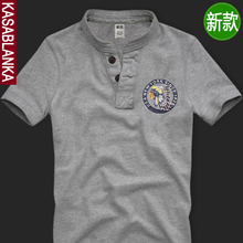 2017夏装新款af男士短袖t恤纯棉立领打底亨利领纯色大码休闲男装