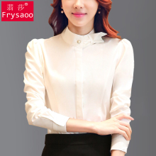 春装女装2017长袖职业衬衫女秋纯色显瘦立领ol打底衫上衣白色衬衣