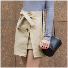 好质量英伦高腰双排扣系带蝴蝶结A字裙短裙包裙半身裙女秋冬新款