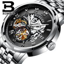 正品宾格BINGER手表男全自动机械表镂空机械男士手表运动男表