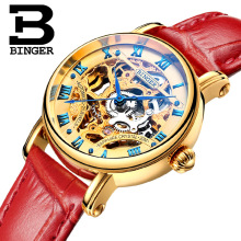 正品BINGER宾格手表全自动机械表女表女士手表时尚钢全金金面