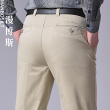 漫博斯秋冬款中年男裤弹力抗皱男士休闲裤宽松直筒纯棉男装长裤子