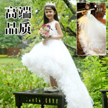 A96晚礼服拖地长款夏女童连衣裙子儿童蓬蓬婚大中花童1215岁白色