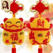蒙娜丽莎十字绣汽车挂件招财猫小挂件平安符车挂饰全珠绣全珠子绣