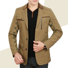 2017春装男士夹克中年纯色翻领外套爸爸装西装男休闲大码纯棉上衣