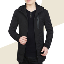 2017春装男士休闲夹克薄款修身外套连帽中长款上装中青年大衣男潮