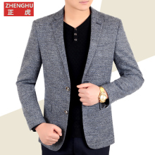 2017春装新款男士外套羊毛呢夹克休闲外套毛呢商务修身立领爸爸装