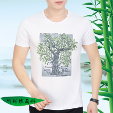 2017夏季男士短袖t恤竹纤维圆领印花半袖中年夏装爸爸装t恤衫打底