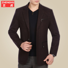 男装春秋新款中年男士毛呢夹克韩版修身西装翻领外套爸爸装羊毛呢