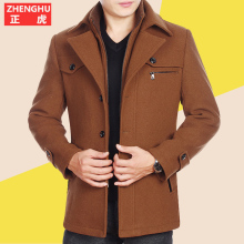 正虎男装 秋冬新款男士大衣休闲中长款羊毛呢风衣外套呢子男爸爸