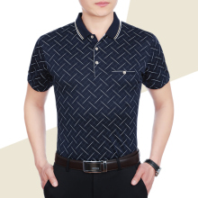 2017男士短袖T恤夏季爸爸装 中年翻领短袖体恤格子休闲POLO衫上衣
