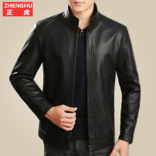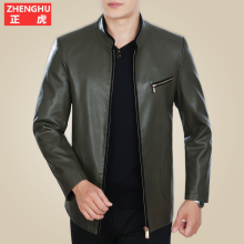 春秋男士外套海宁皮衣中年修身皮夹克男休闲立领夹克爸爸装机车皮