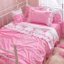 粉嫩公主田园婚庆床上用品纯棉被套床裙花边床罩三四件套少女情怀