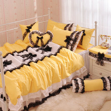 家纺套件田园纯棉公主房床上用品蓝黄紫白色蕾丝花边床裙三四件套