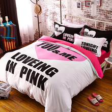 家纺个性字母黑白纯棉床上用品四件套全棉简欧美PINK床单被套