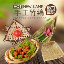 纯手工竹编制品簸箕藤编青竹舟饭店酒店异形三角形水果点心竹篮筐