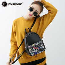 Fourone2016新款铆钉双肩包女日韩小清新涂鸦迷你背包潮包82051