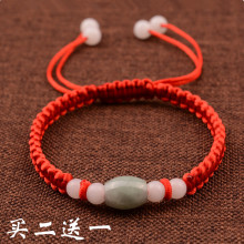 天然A货翡翠转运珠手工编织手链 男女情侣手绳 本命年红绳子批发