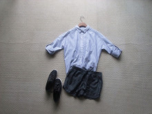 清新蓝条 BF风格 宽松 小口袋 衬衫 少量 K
