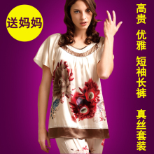亏本清仓 夏季女士短袖长裤仿真丝睡衣真丝家居服丝绸套装女包邮