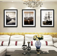 客厅装饰画现代黑白城市建筑欧美风景有框画酒店样板房墙挂壁画