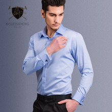 克雷司登春秋纯棉免烫法式袖扣长袖衬衫男士商务正装衬衣新郎结婚