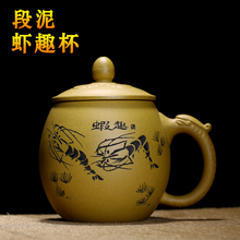 悦目清心 宜兴紫砂杯 名家纯全手工原矿段泥刻绘虾趣茶杯具