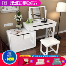 恋维斯现代简约卧室梳妆台伸缩白色烤漆化妆桌子小户型翻盖化妆柜