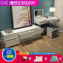现代简约卧室梳妆台伸缩白色烤漆化妆桌子小户型翻盖化妆柜电视柜